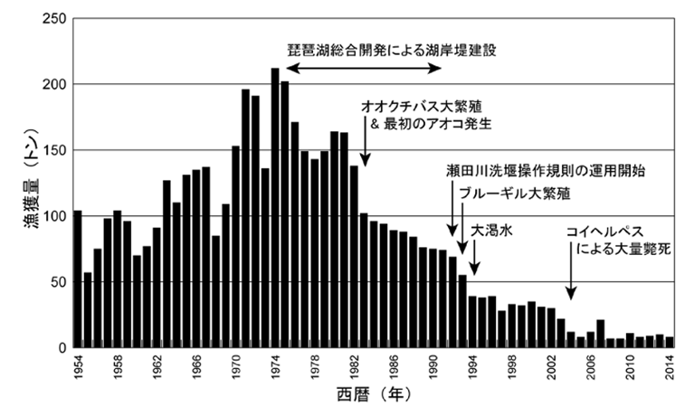 逆に、琵琶湖に流れ込んでくる河川に卵を産むようなアユなどは、あまり減っていないようです。