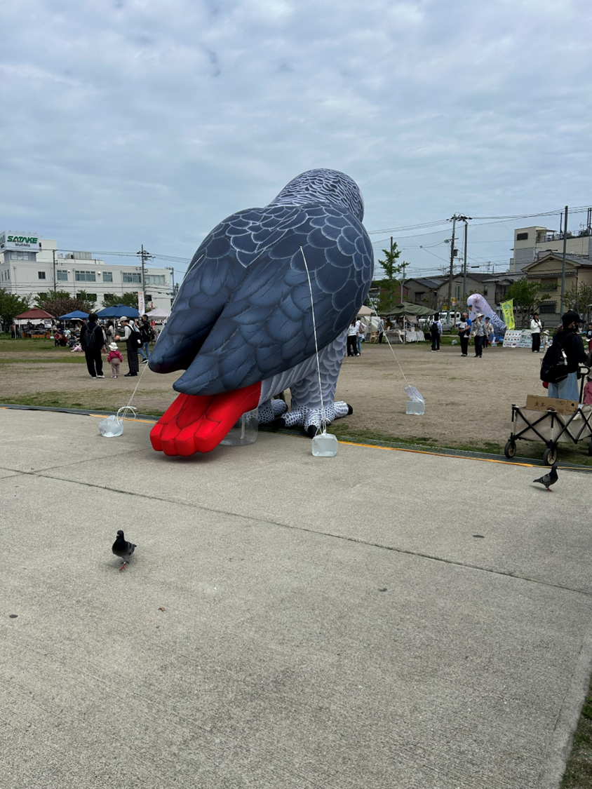 ヨウムバルーンのところで、子供連れのお母さんが「みてみて~おっきなハト~!」って言ってました。