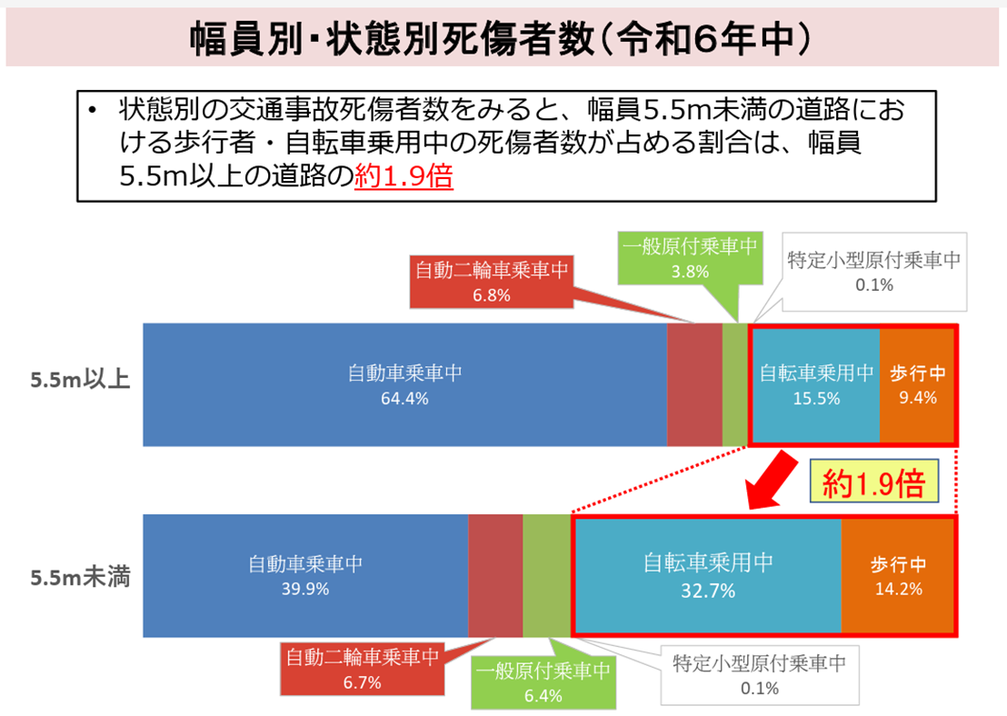 交通事故の性質は、道路の幅員によって大きく異なるというデータです。