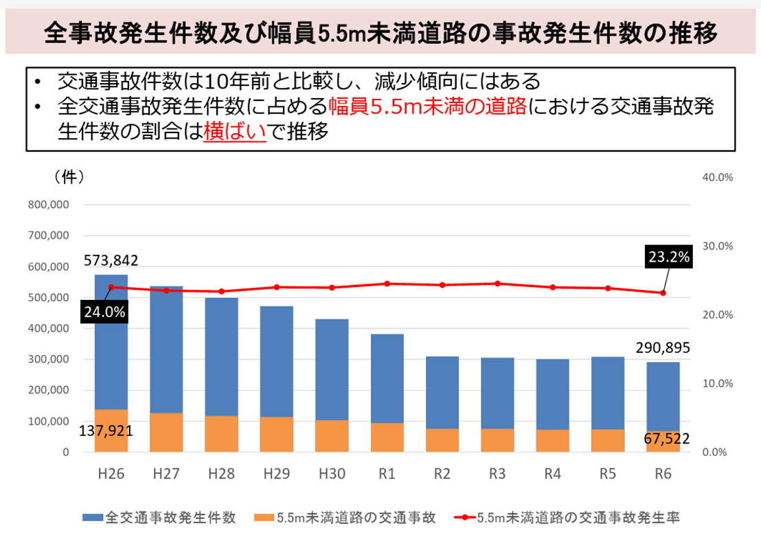 交通事故件数はしっかり減っていますが、幅員による割合は変わっていません。