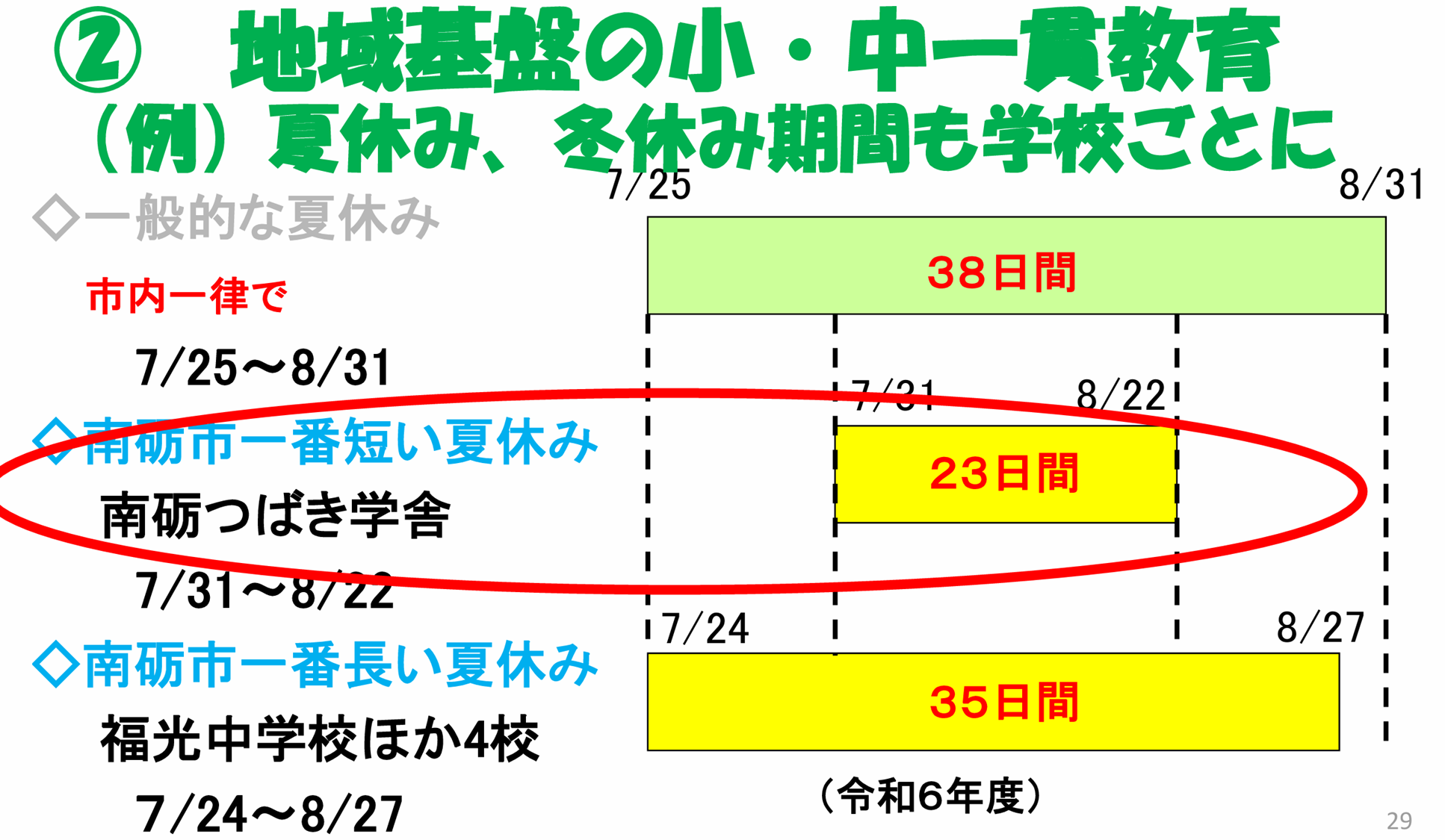 ②夏休みを減らして6限をなくす