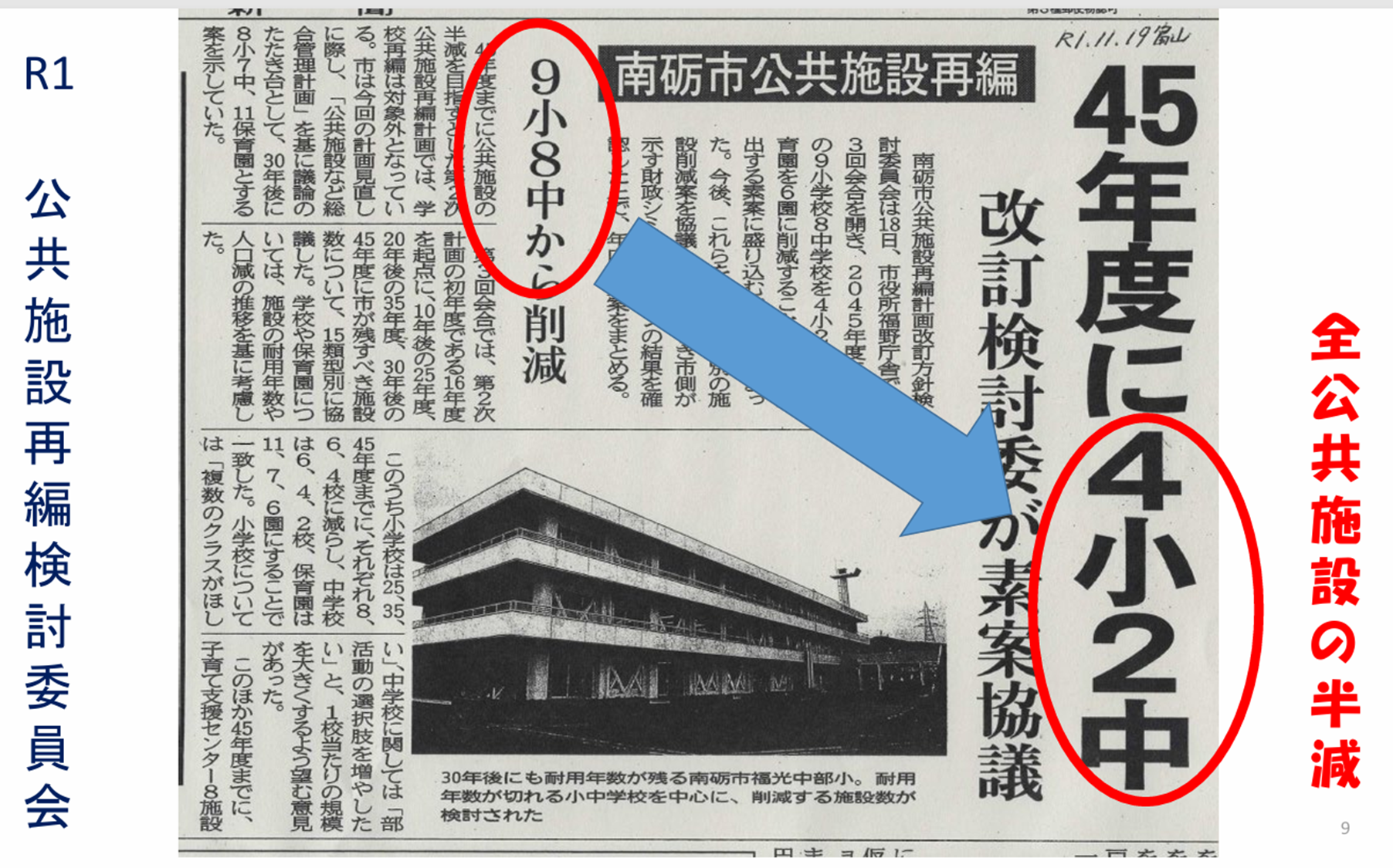 「できない理由ではなく、どうすればできるか考えよう」を実行されていました。川西市でも、生徒数や学校の建築年数によるところもあるが、学校を維持しようとされていました。その中でも、2点参考にできるかなと考えました。