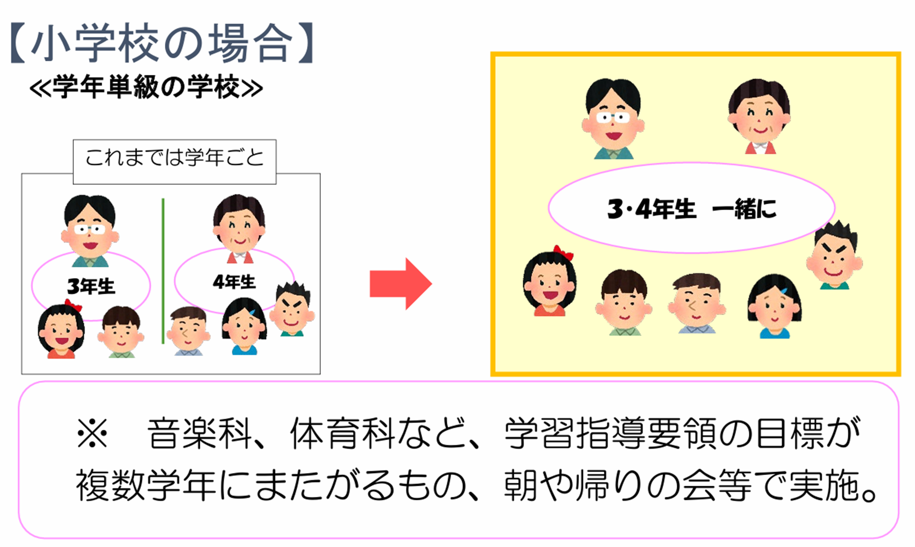 複式授業とは学年をまたがって同じ教室で授業すること。人数が少ない学校であれば有効かと思います。