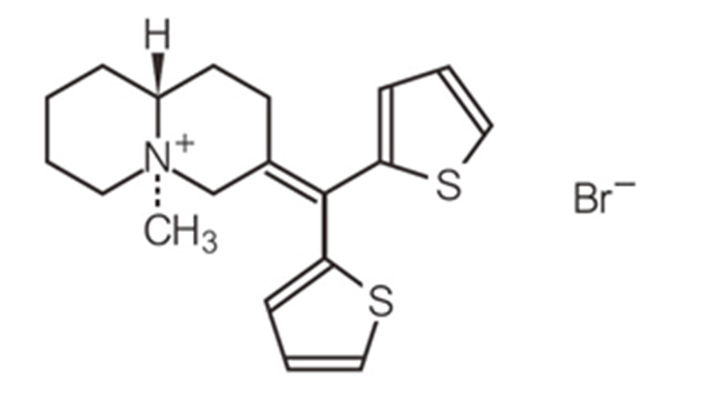 四級アンモニウム塩になっていますが、冒頭に書いたトロパン骨格ではありません。植物由来ではなく、化学合成によって作られた医薬品です。いらない抗コリン作用を減らすため、副作用(Side effects)を否定する(deny)を文字って、セスデンと命名されました。