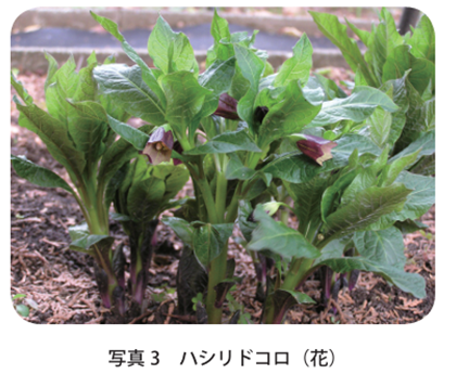 新芽がフキノトウに似ているらしく、誤食による中毒症状が現れるそうです(引用:野山の花)。そりゃ抗コリン作用を見てもらえば大量摂取すれば何が起こるか想像できますね。1,2枚の葉を食べると中毒をおこし、幻覚に襲われ走り回ることから「ハシリドコロ」と名付けられました。