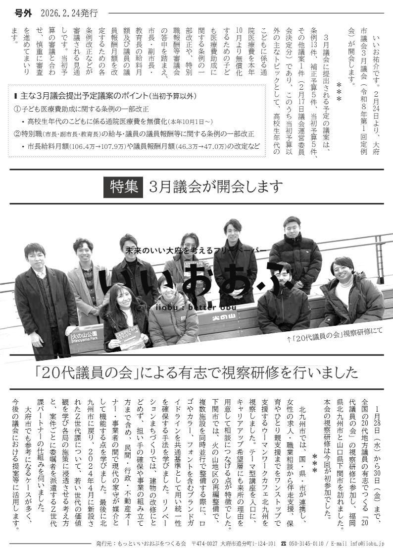本記事では、朝の駅頭活動で配布している活動報告「いいおおぶ」の号外(2026年2月24日発行)を掲載します。