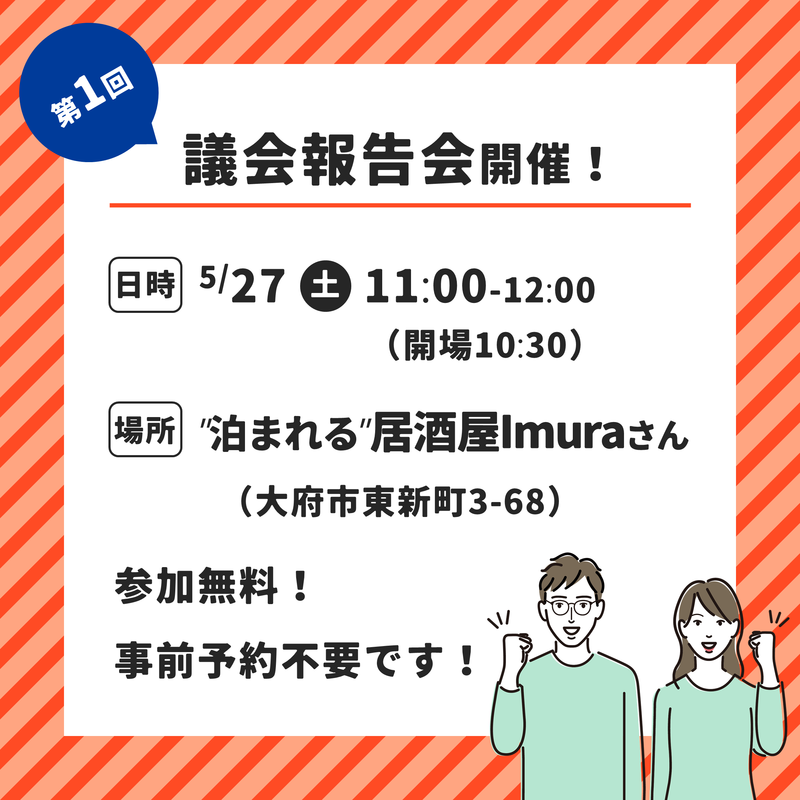 5月27日(土)、私、いいお祐介の議会報告会を開催します。