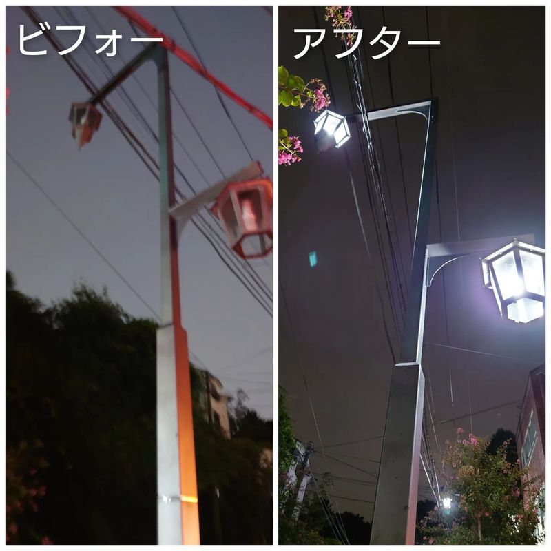 昨日夜に改めて現場を確認し、街路灯が点灯し、復旧したことを確認しました。