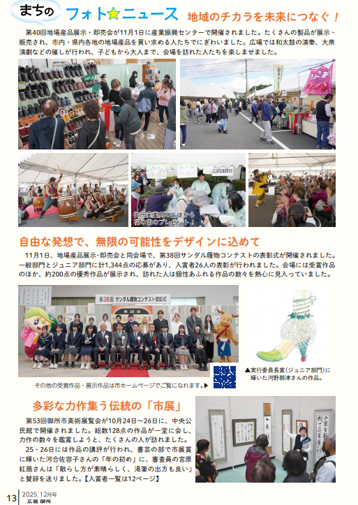第38回サンダル履物コンテストや、霜月祭や食の農のフェスタのフォトニュースもございますので、是非一読ください!