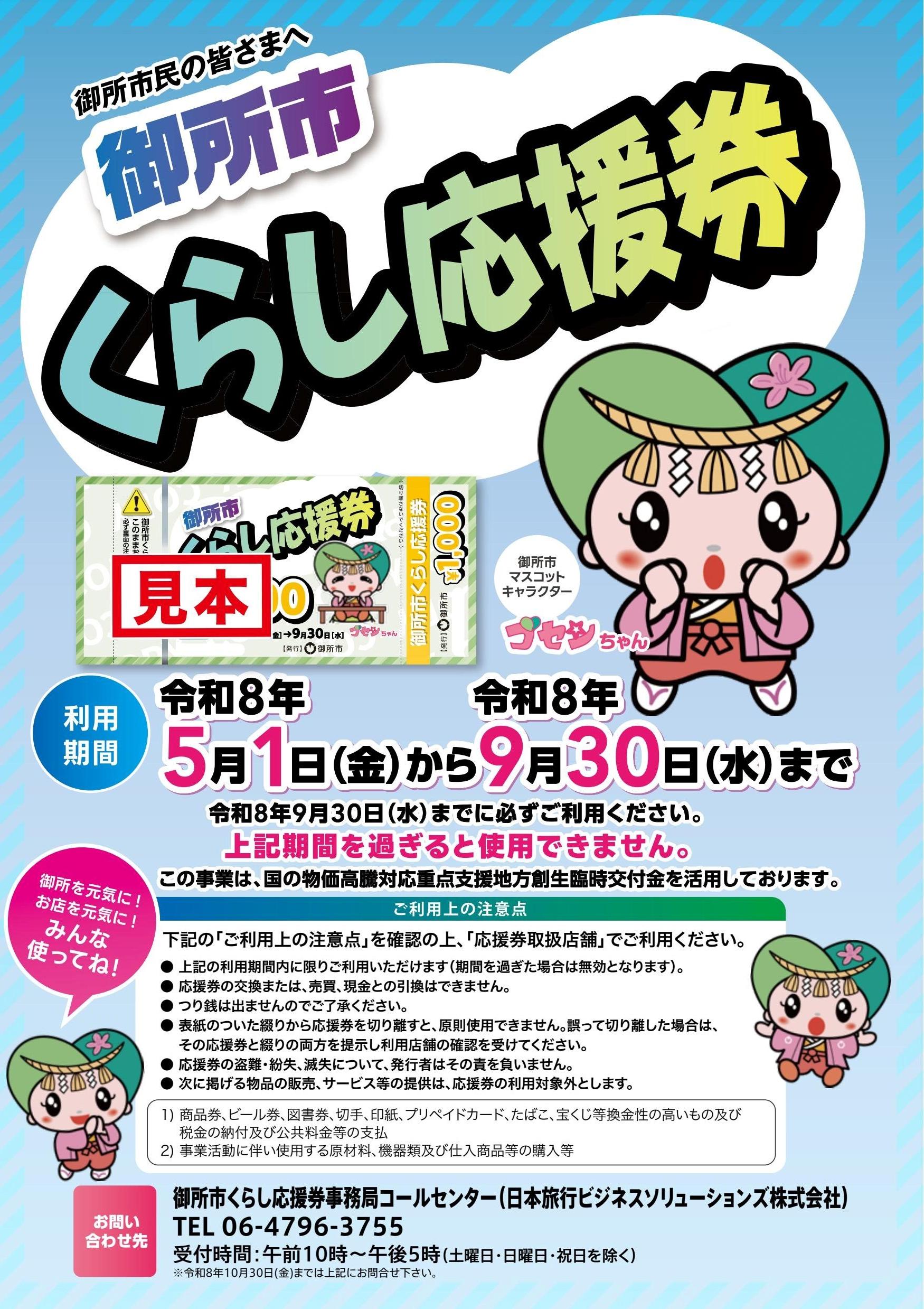 国の物価高騰対応重点支援地方創生臨時交付金を活用し、生活支援ならびに市内での消費促進のため、御所市では「くらし応援券」が配布されます。