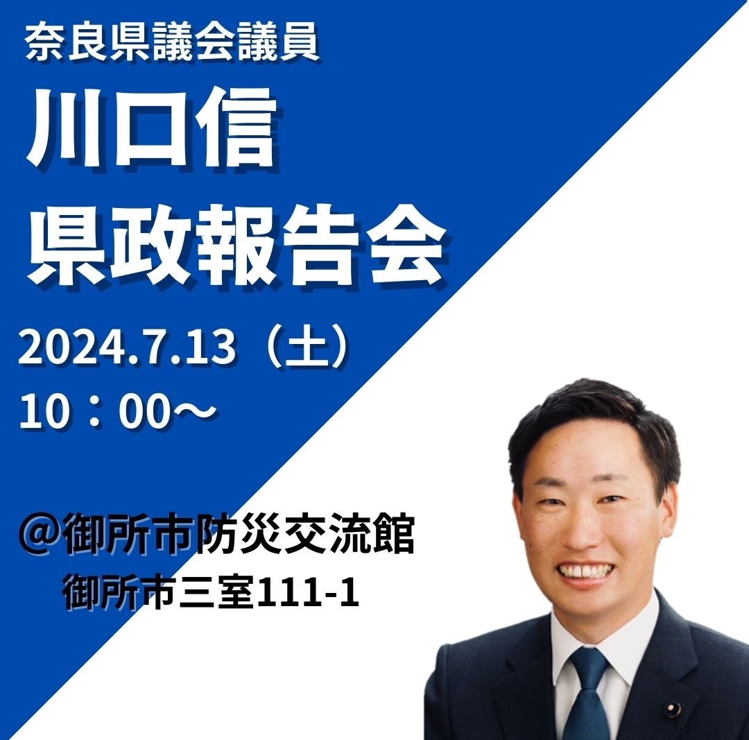 奈良県議会議員【御所市選出】の川口信(かわぐちしん)です。