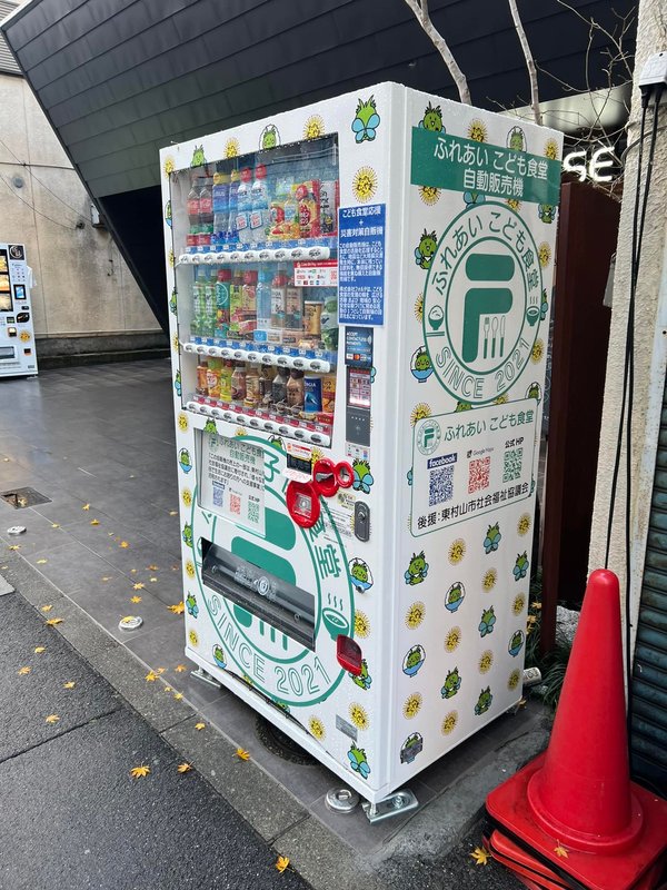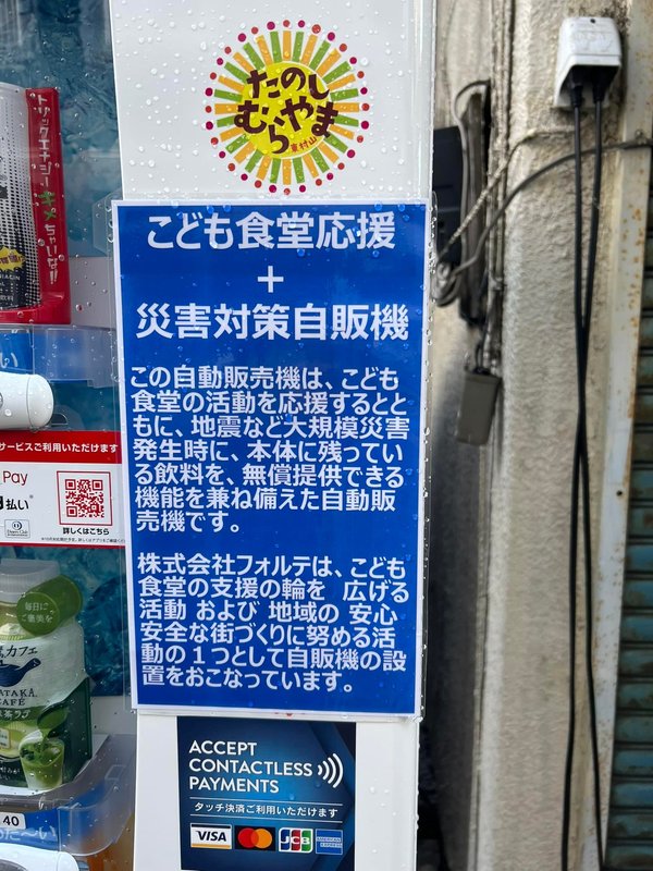 いつもお世話になっている不動産屋さんフォルテさんの前にこんな自販機が! こども食堂応援と災害対策用のようです。