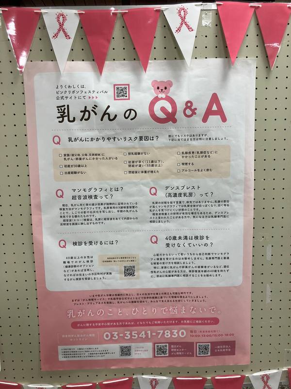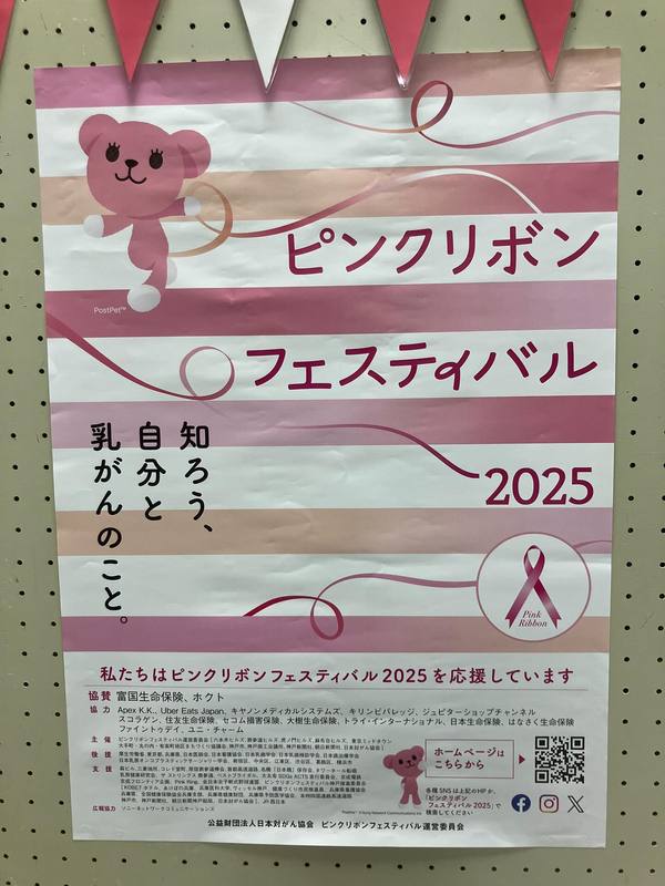 本日、新宿区役所で開催されている「ピンクリボンフェスティバル2025」の展示を拝見しました。
