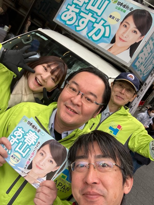 ホーム>政党・政治家>おやまだ 静香 (オヤマダ シズカ)>歌舞伎町に藤田文武共同代表が来てくださり、街頭演説を行いました😊区議メンバーのオフショットを載...