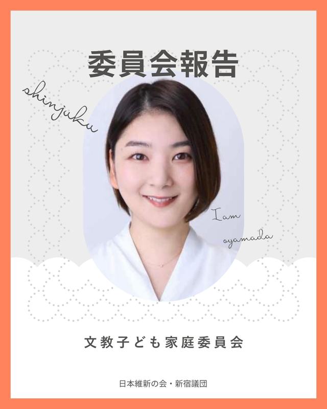 ホーム>政党・政治家>おやまだ 静香 (オヤマダ シズカ)>みなさまこんにちは😊新宿区議会議員のおやまだ静香です!本日は文教こども家庭委員会が開かれました...