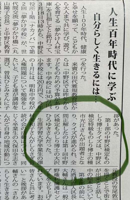 そして、ゆめかけ学校での中野区ものしり博士クイズでの優勝。政治家としてではなく一区民として取り上げて頂けて嬉しかったです。