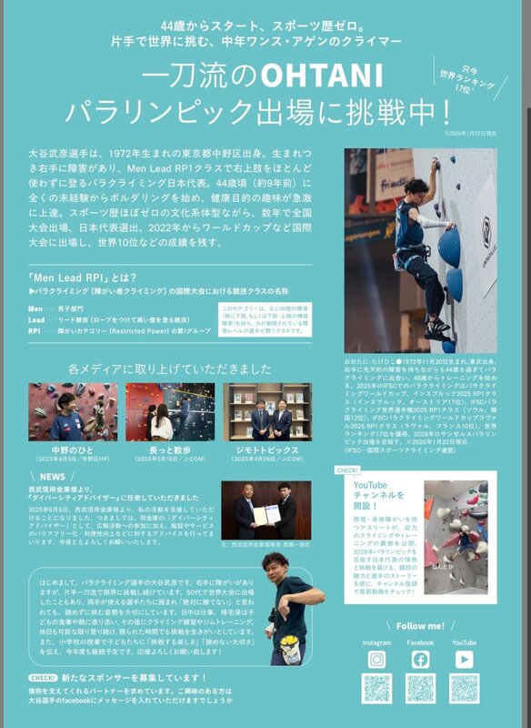 ホーム>政党・政治家>大沢 ひろゆき (オオサワ ヒロユキ)>【中野区】もうひとりの大谷ことパラクライミング日本代表一刀流の大谷武彦選手の初めての講演@中野...