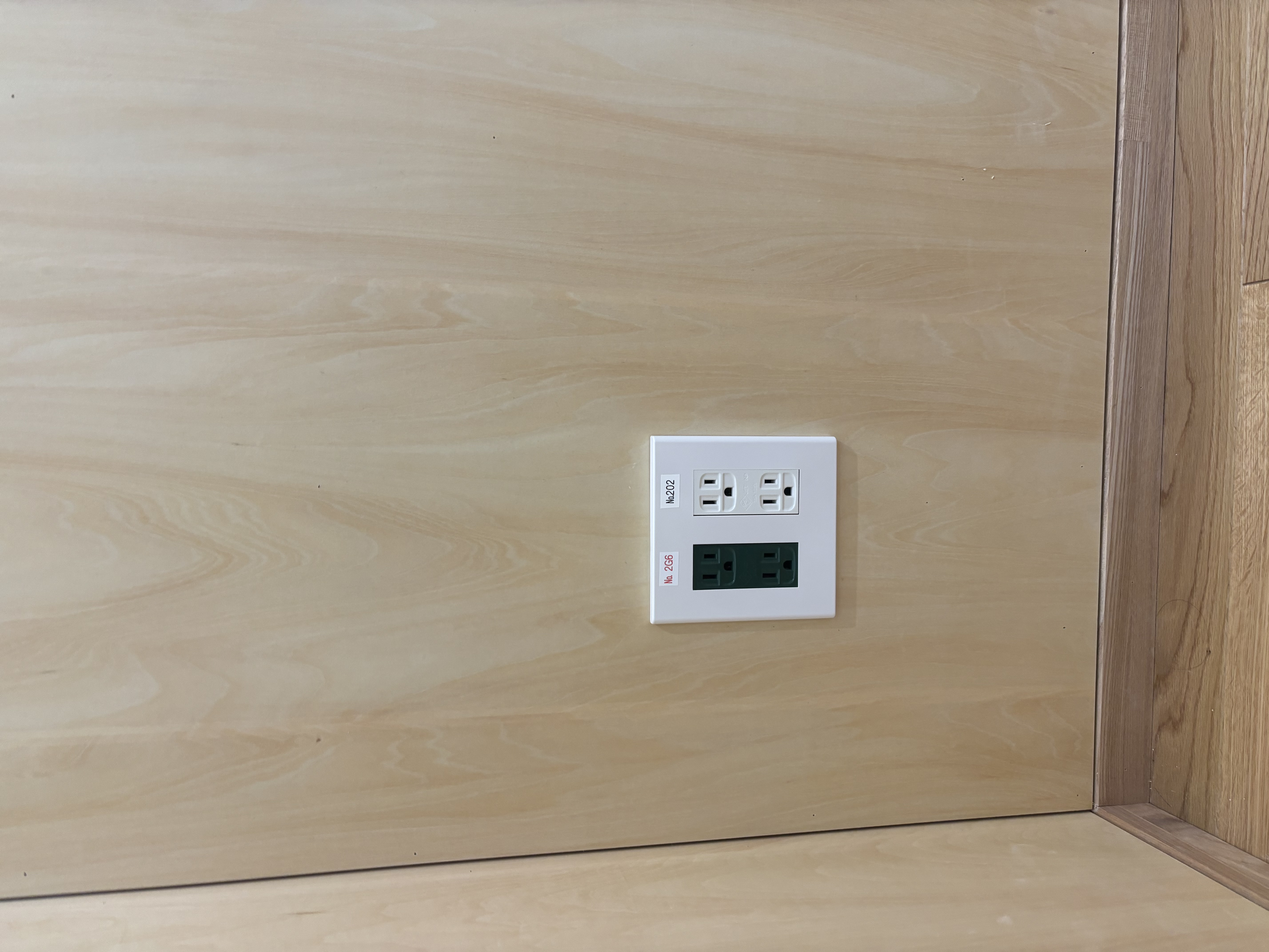 2階には、女性ユニット等があり、医療ケアの方を受け入れられるように対応しています。非常時用のコンセントは停電しても3日間は使用が可能です。