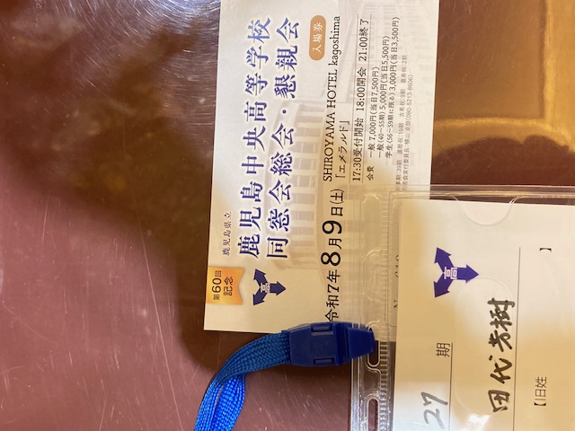 城山ホテル鹿児島で開催された、母校の鹿児島中央高校の60回記念同窓会に出席しました。