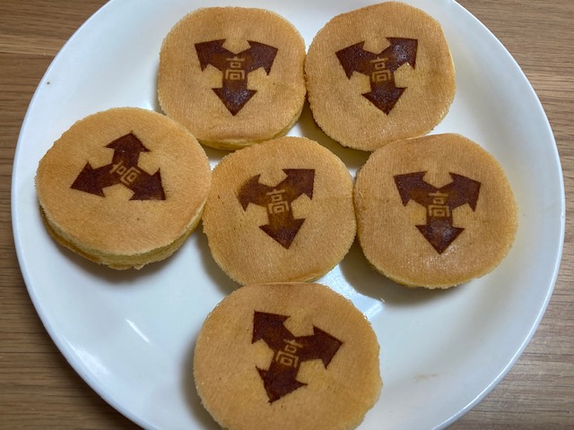 自宅に帰って、高校のロゴ入りの金生まんじゅうをいただきました!