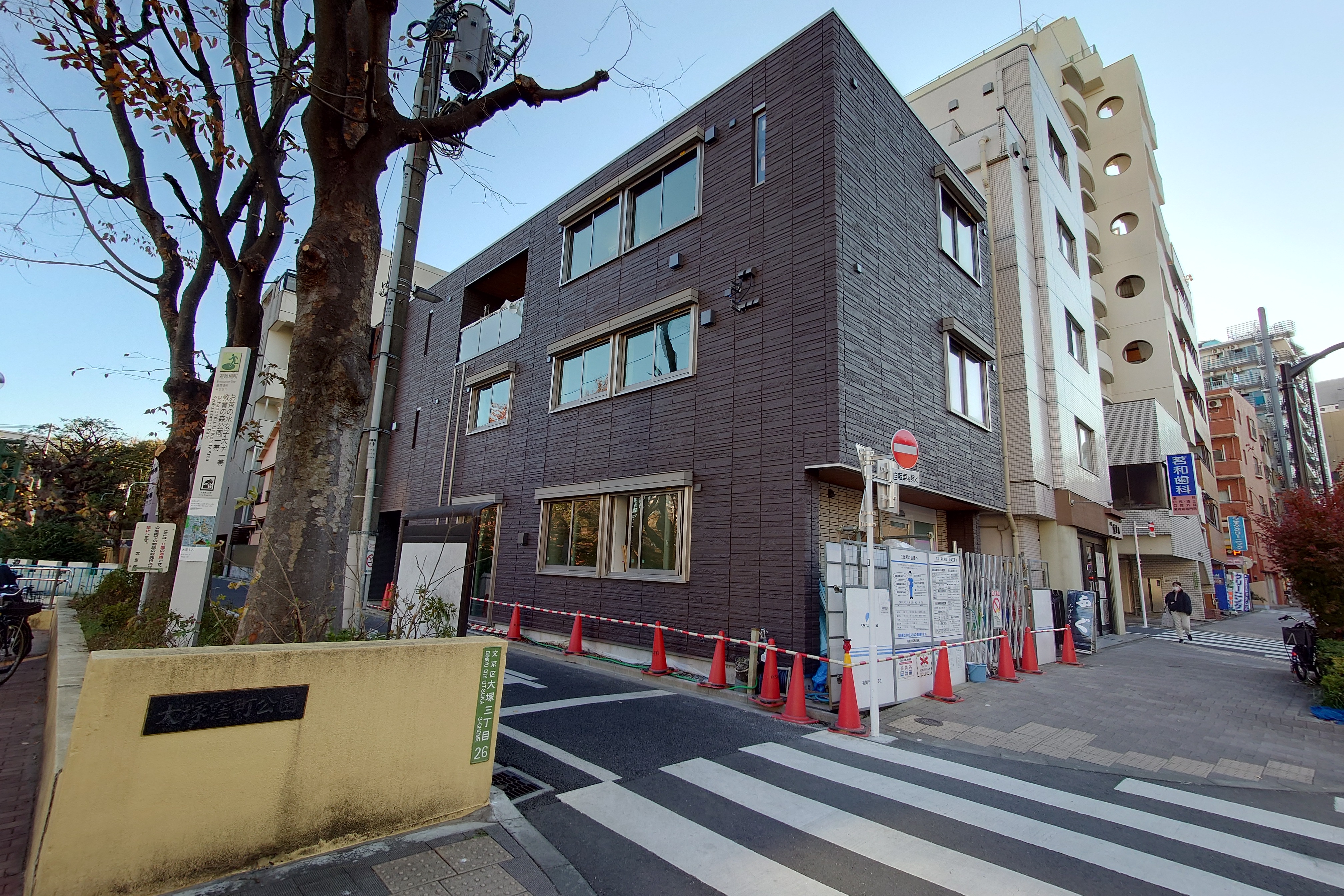 こちらは建設中の窪町第二、第三育成室の建物です。オーナーさんが地域貢献のため自宅(+賃貸アパート)の建て替えの際に1階と2階を育成室にしてくれました。オーナーさんは長く地域に貢献されている方です。こうした技も使いながら区は施設を増やしています。お寺のお堂の一部を使っている育成室もありますよ。