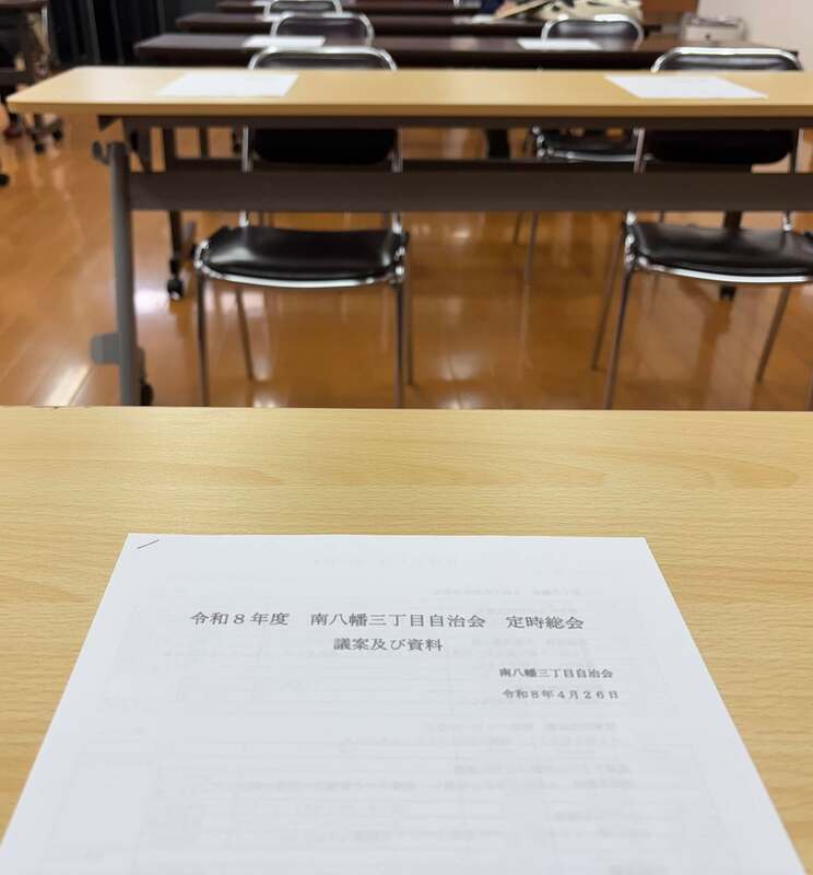 4月26日 13時〜『南八幡三丁目自治会』の総会に副会長として出席。