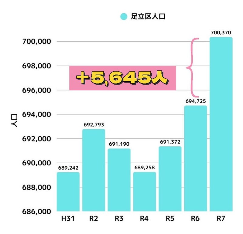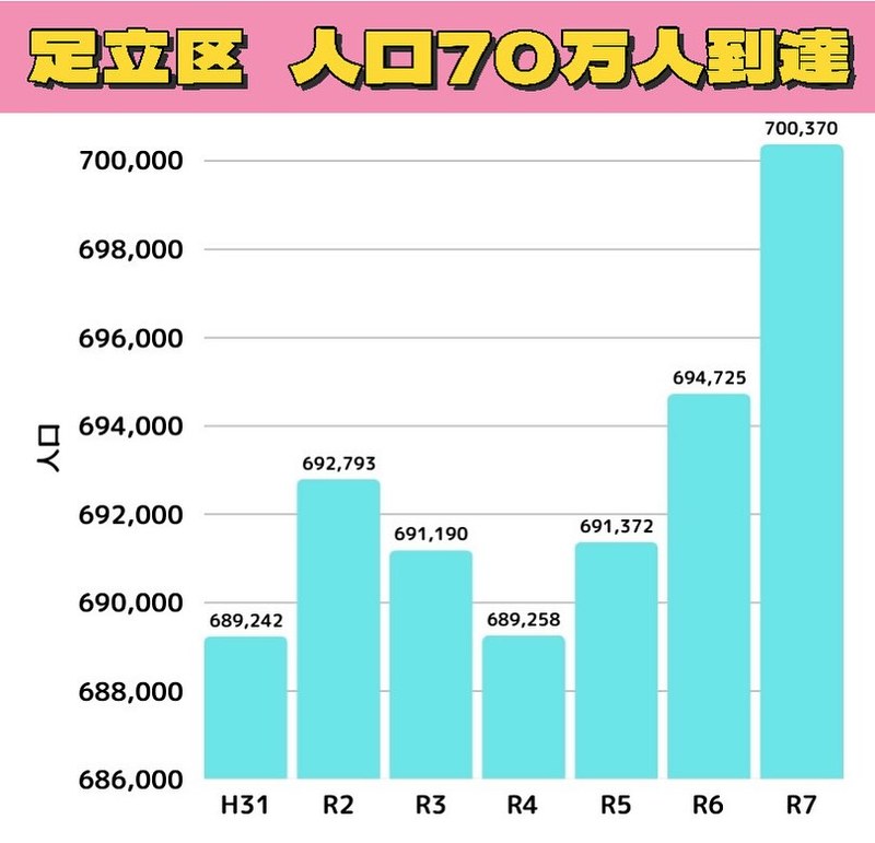 ホーム>政党・政治家>岡田 将和 (オカダ マサカズ)>【足立区】人口70万人到達。