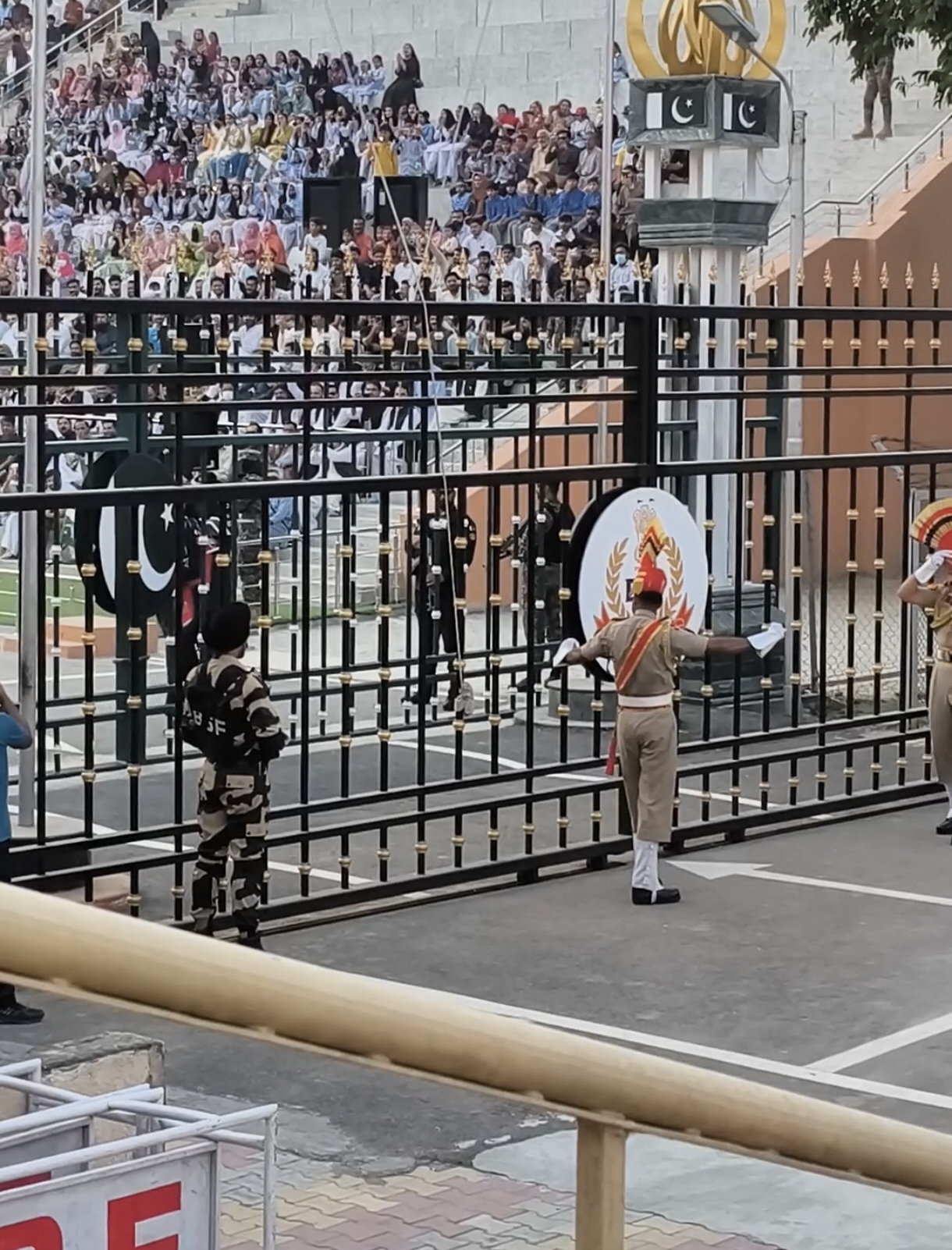 ワガ国境に立つと、日没前から観客が集まり、太鼓やラッパの音が鳴り響きます。