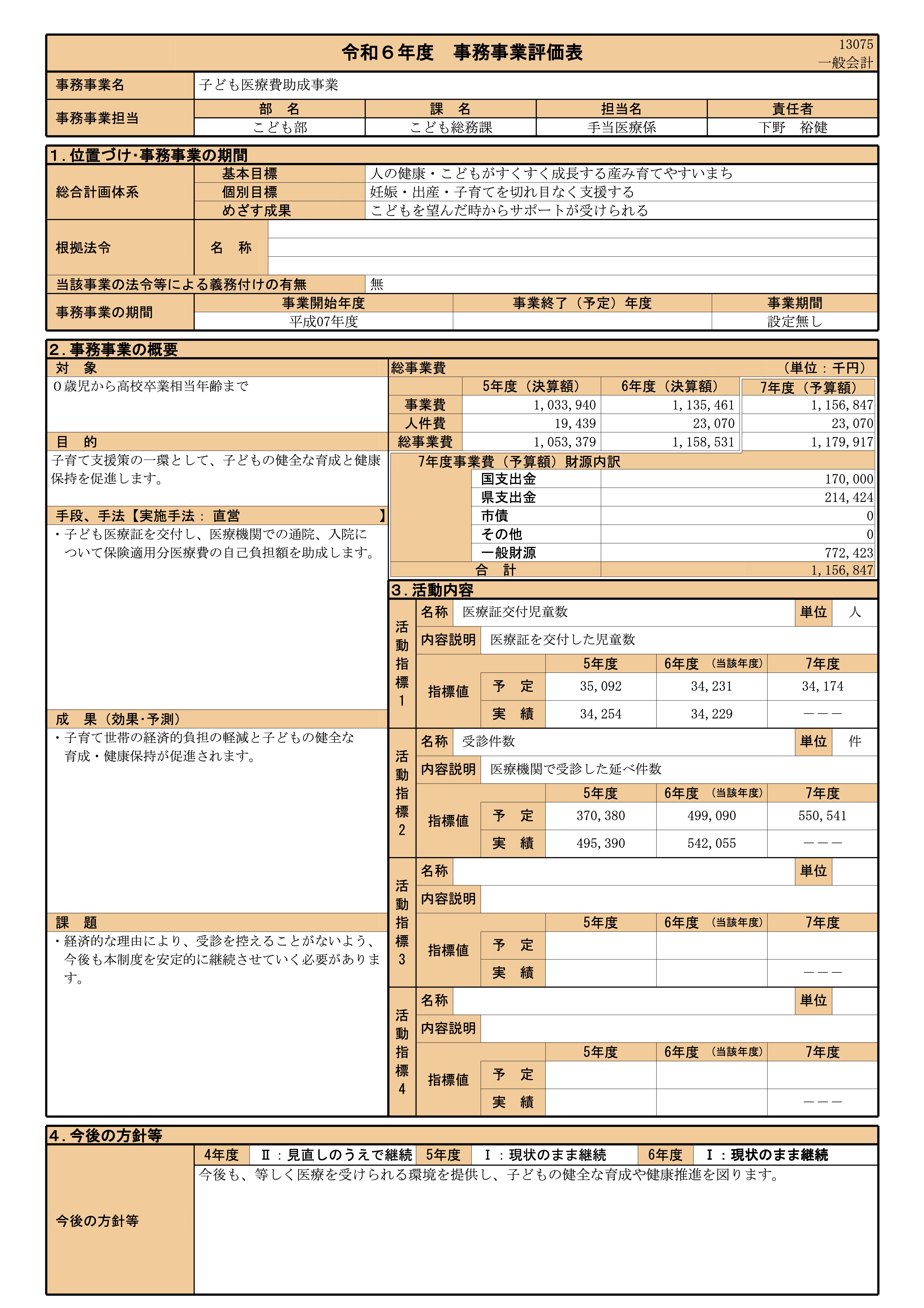 ホーム>政党・政治家>星野 しょう (ホシノ ショウ)>【大和市・事務事業シリーズ】▶︎No.4▶︎『子ども医療費助成事業』▶︎目的:子育て支援策の一...
