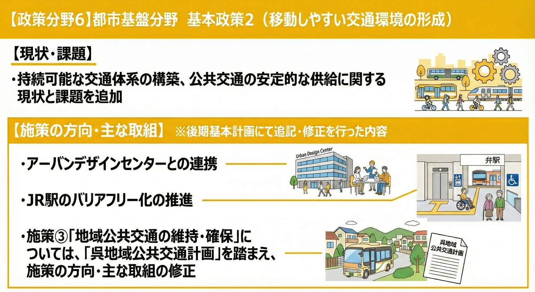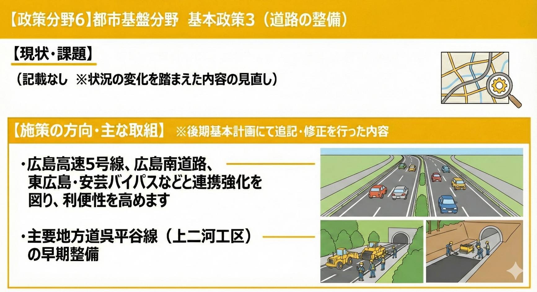 今回のテーマは都市基盤分野です。呉市議会で報告された資料をもとに、重要ポイントを画像で分かりやすくまとめました。