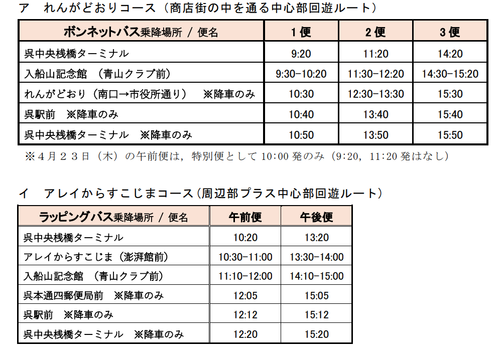 【参照】令和8年4月9日呉市報道発表資料「市内周遊バスツアーの運行について」