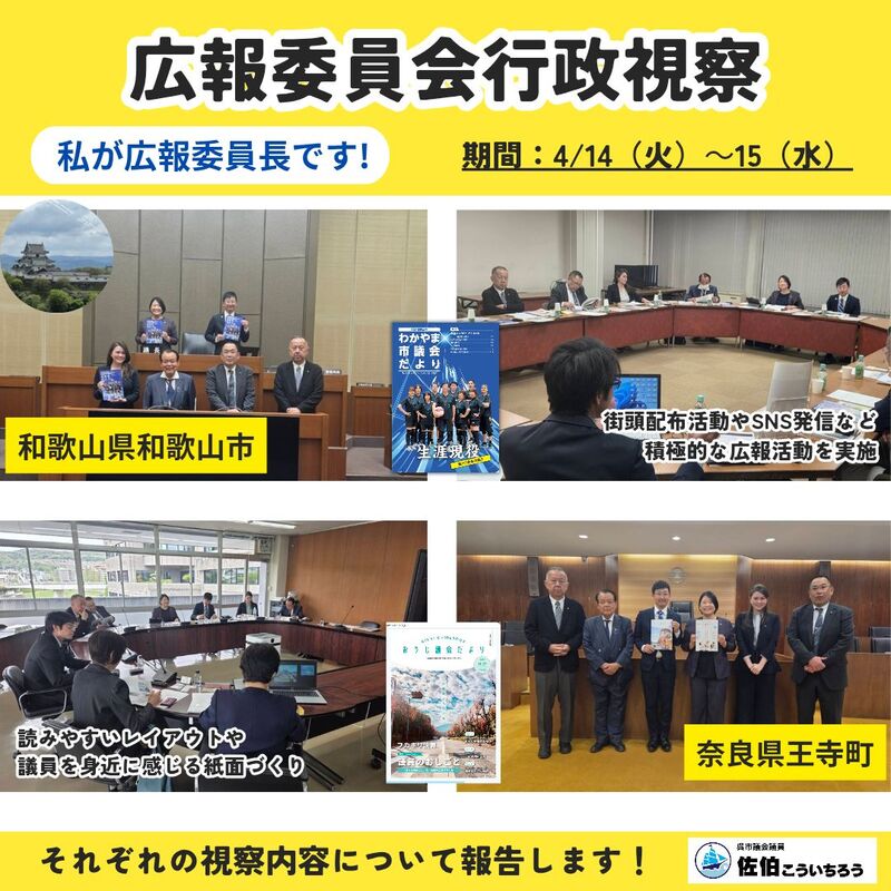 4/14(火)〜4/15(水)に広報委員会の行政視察で、和歌山市議会と奈良県王寺町議会を訪問しましたので、ご紹介します。