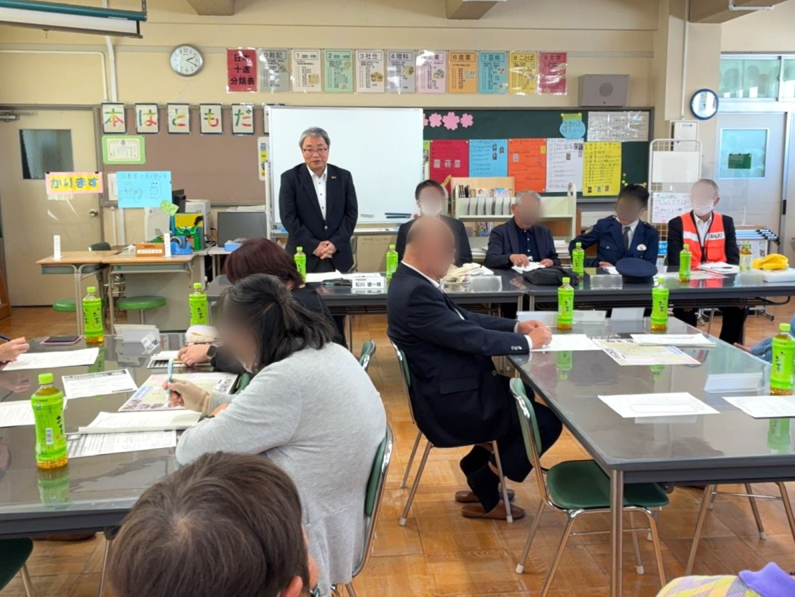 議事内容の承認ののち、防犯・交通安全についての意見交換では、町内の5ブロック(東、南、西、北、新池)ごとの課題を挙げ、皆さまとその共有を行いました。最後に私が指導として、「高棚小学校は、学校および学校関係者、子どもたち、そして地域住民との距離が近いのがメリットなので、皆さんで協力しながら子どもたちを犯罪や交通事故から守っていきましょう」と、締めくくらせていただきました。