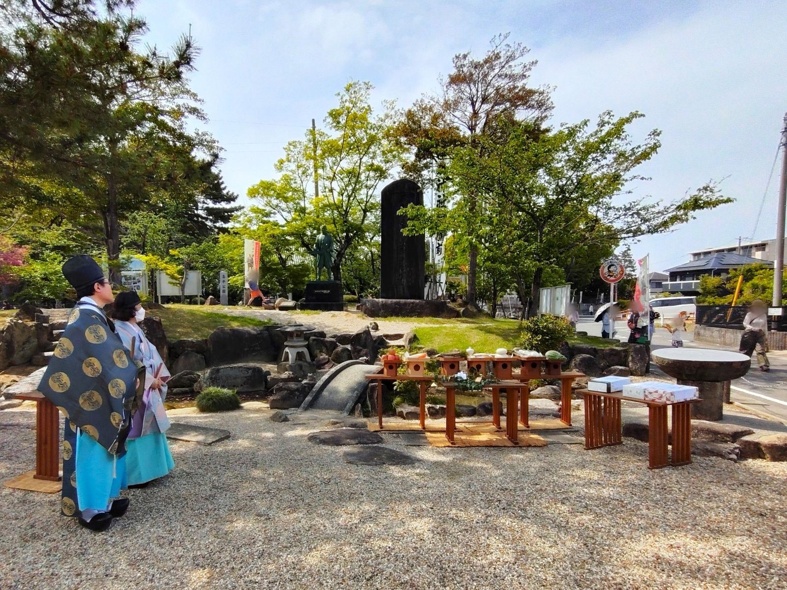 19日午後より、高棚神明神社の春祭り式典と、石川喜平翁頌徳祭(しょうとくさい)に出席しました。高棚町では毎年、春祭りの神社式典を終えたのち、神社に隣接する石川喜平公園の石川喜平翁頌徳碑の前で式典を行っています。