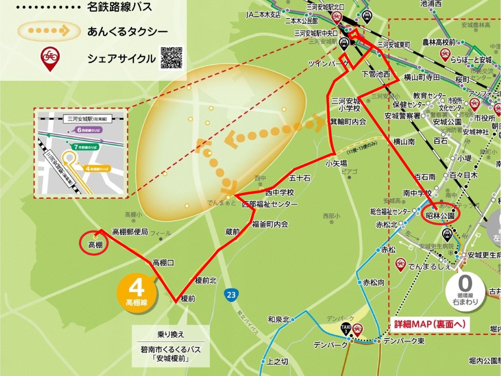24日、安城市が運行するミュニティバス『あんくるバス』の乗車体験会が、西部地区社会福祉協議会さんの呼びかけで開催されました。高棚町にお住まいの方を対象に、高棚線の起点となる高棚停留所から、終点の1つ前となる昭林公園停留所までの乗車です。あんくるバスは、1乗車100円で市内全域を10系統でカバーしています。