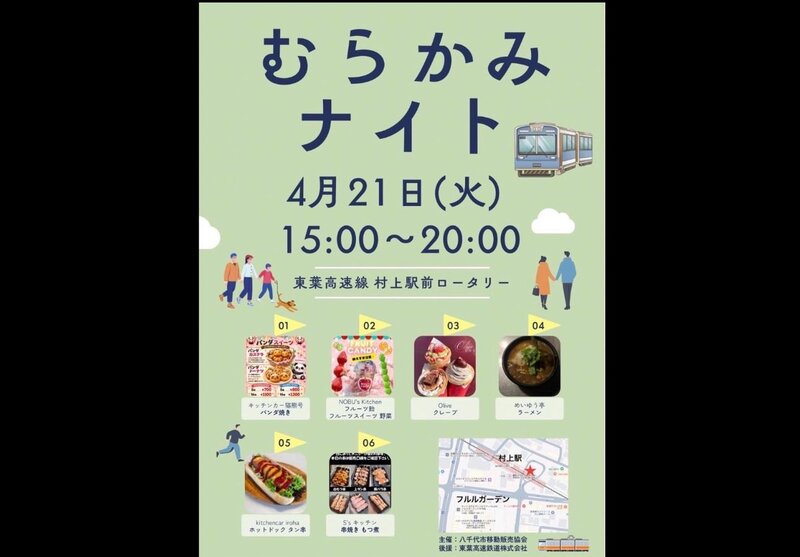 ✨村上ナイト✨4/21本日初開催!20時までやってるよー😄#八千代市移動販売協会#村上駅#高架下