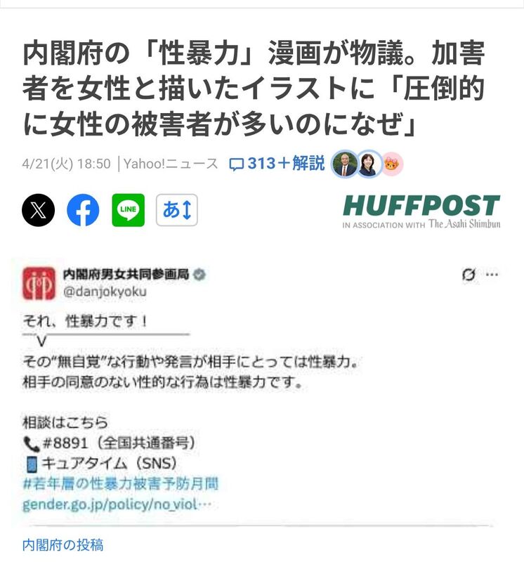 内閣府がこんなだから、毎日報道される教諭による子どもへの性犯罪も、痴漢も盗撮も、ラオスでの日本人による小児買春も日本では減らないのでしょう。