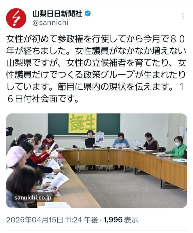 山梨日日新聞さん、保守系の女性議員も大切にしてくれませんか?