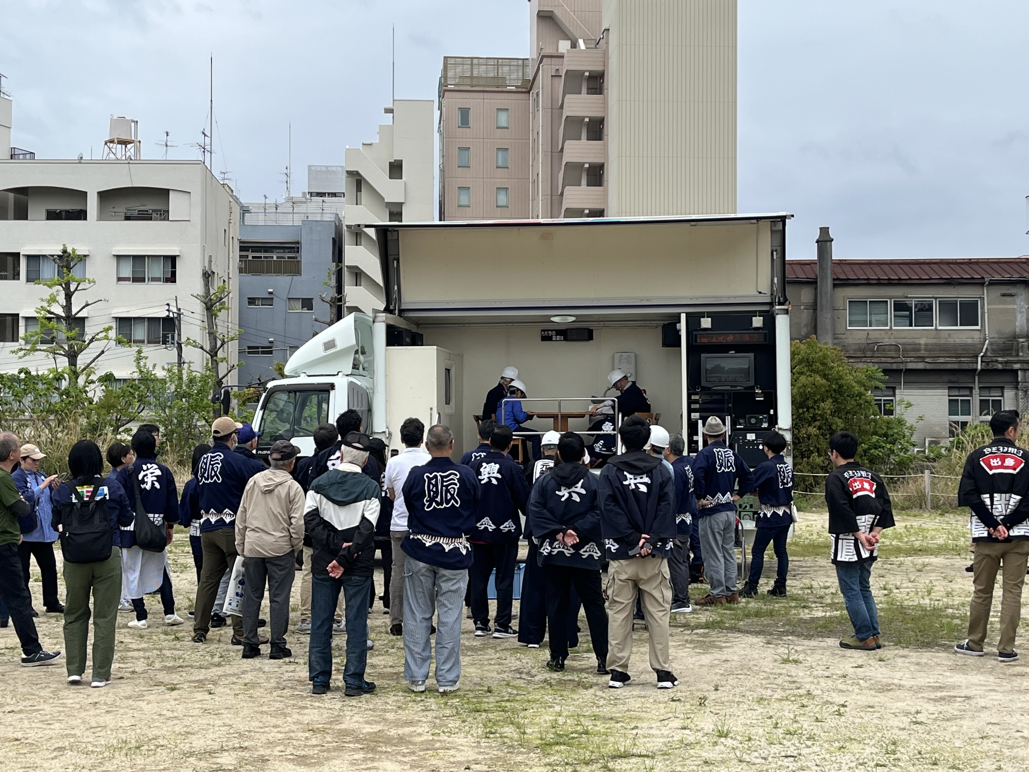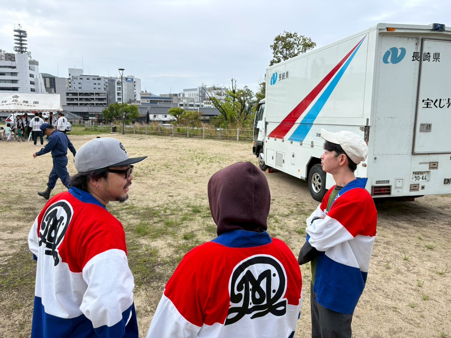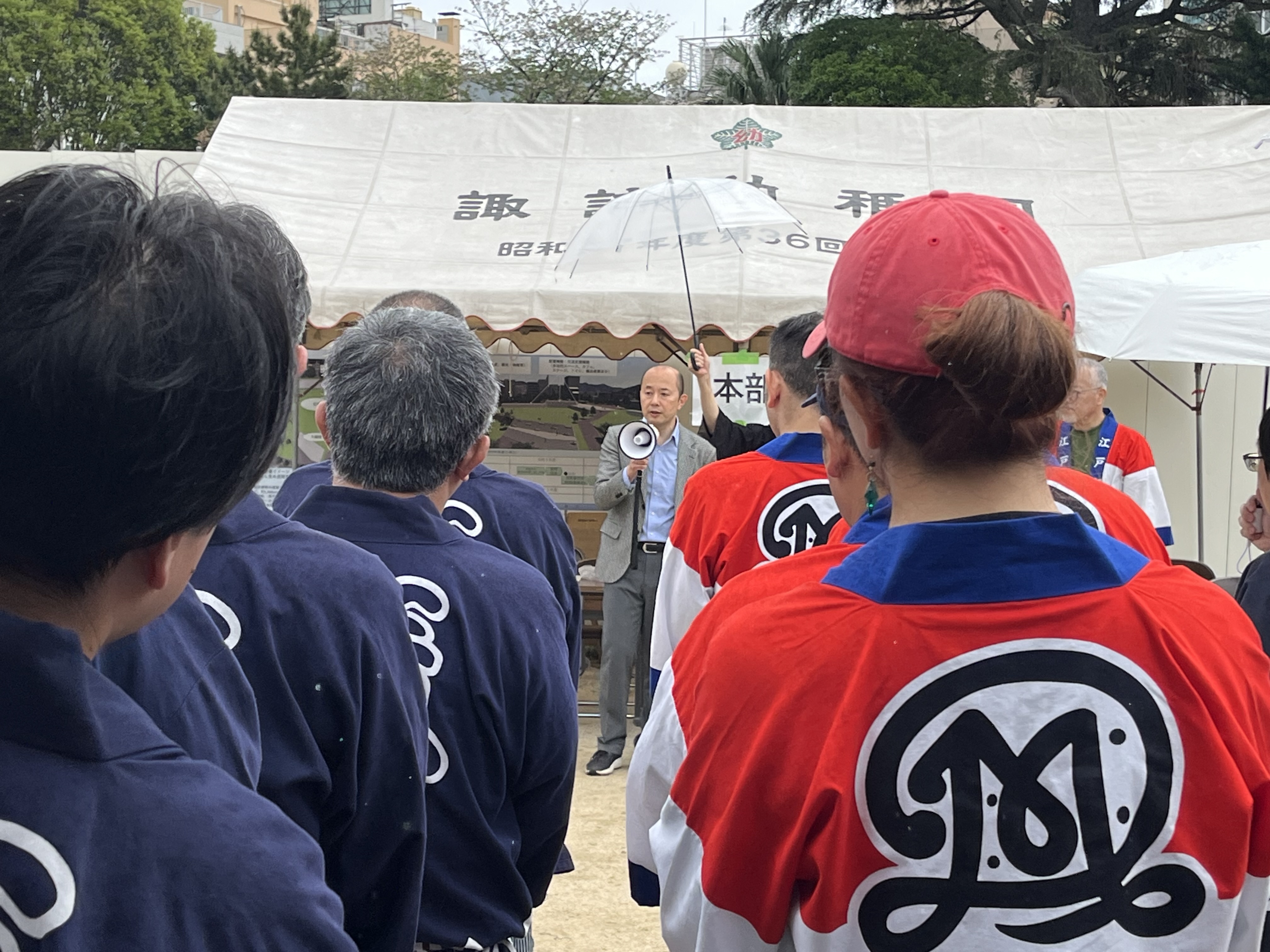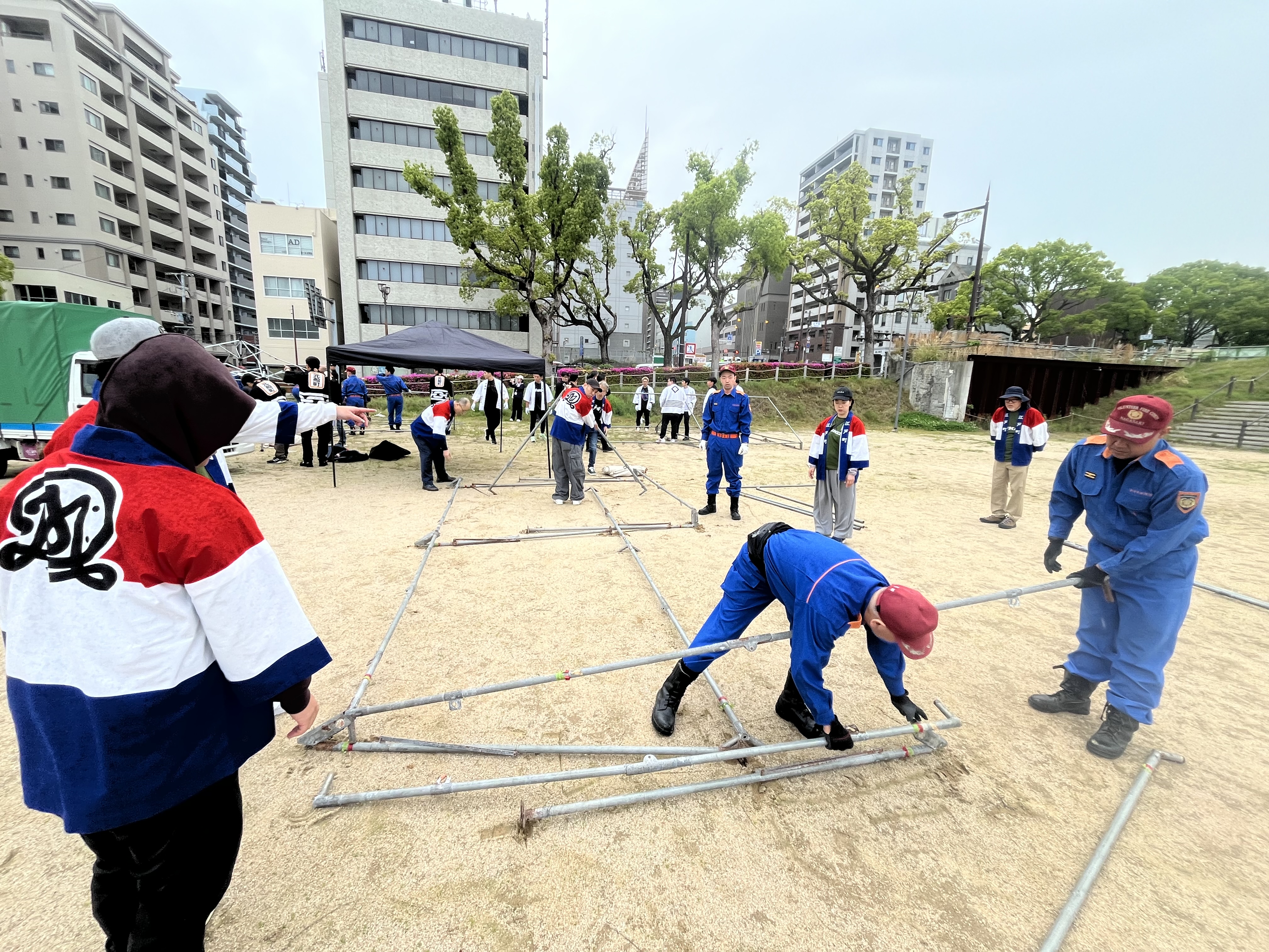早朝、各自治会や青年部・消防団の皆さんと設営(長崎県庁跡地)朝7時30分から各自治会の方が集まり、設営・運営を行いこれからの地域コミュニティが目指すべき「新しい形」を実感する一日となりました。