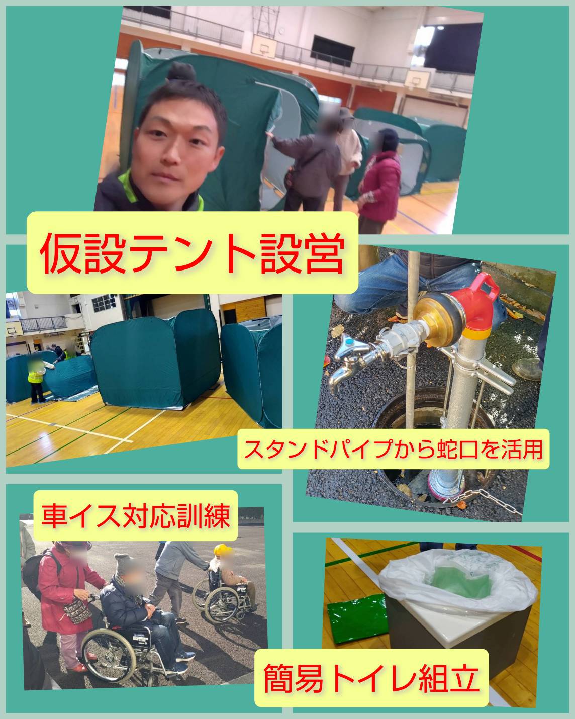 ここでは、備蓄用品、資器材の確認、スタンドパイプから蛇口を活用する訓練や簡易トイレの組立訓練など充実した内容で、反復した訓練が必要だと改めて実感しました🙇