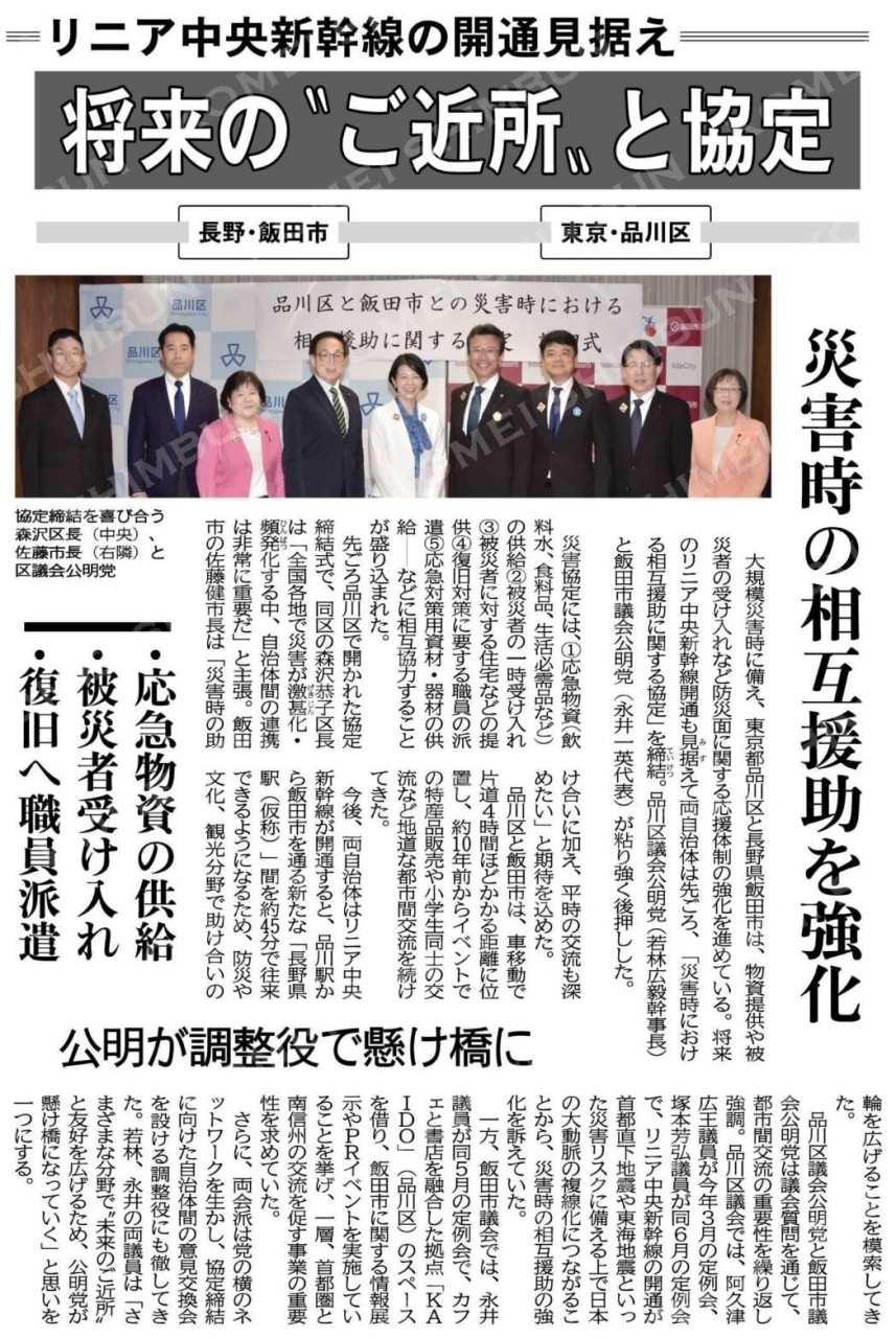 ホーム>政党・政治家>ゆきた 政春 (ユキタ マサハル)>【品川区と飯田市、防災協定】