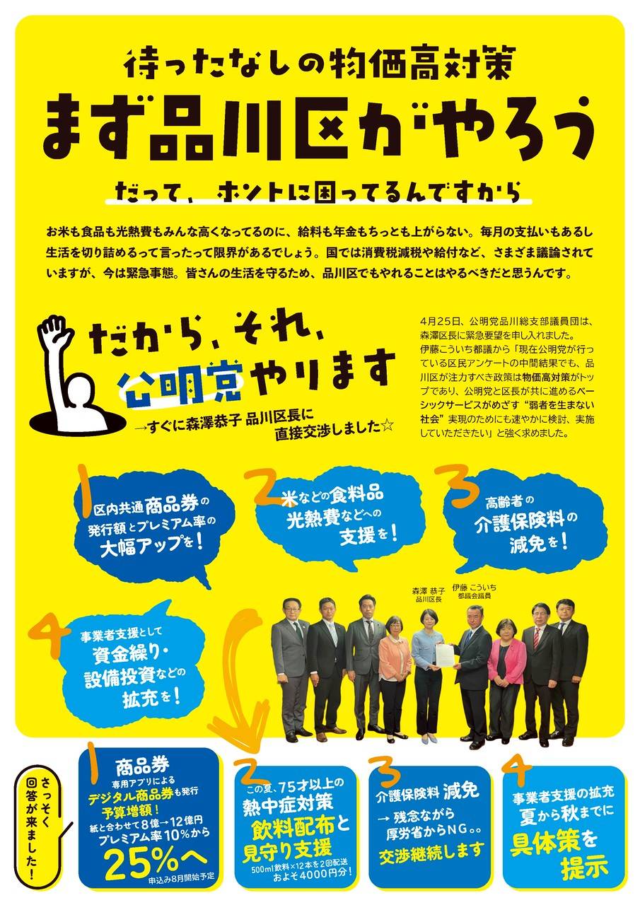 先月25日、緊急事態の【物価高対策】を「品川区でもやれることはやるべき」と伊藤こういち都議と品川区議会公明党で森澤区長へ緊急要望❗️
