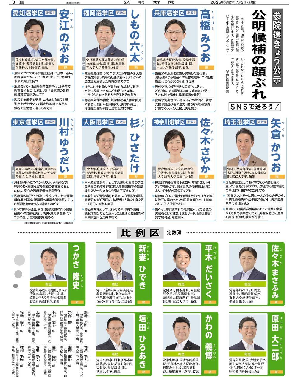 兵庫、福岡、愛知、埼玉、神奈川、大阪、東京の「7選挙区」の候補者が出ます。