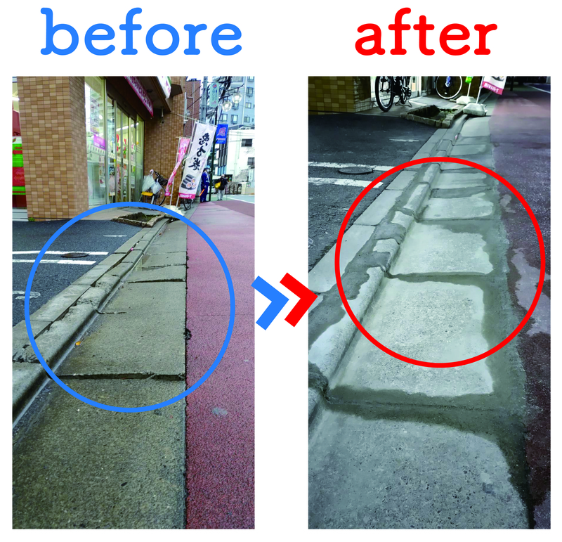 すぐさま武内区議を通して、品川区の道路課に状況を伝え、先日、暫定的に工事を行っていただき、改善することができました✨