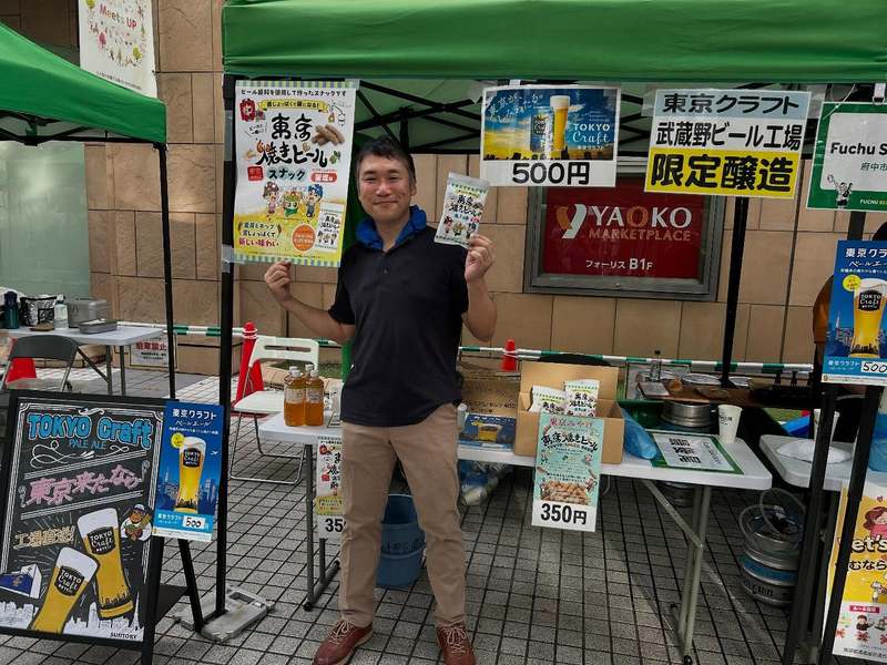 所属している府中市酒販組合は、地元府中市にあります「〈天然水のビール工場〉東京・武蔵野」から直送されました「東京クラフト」を販売。