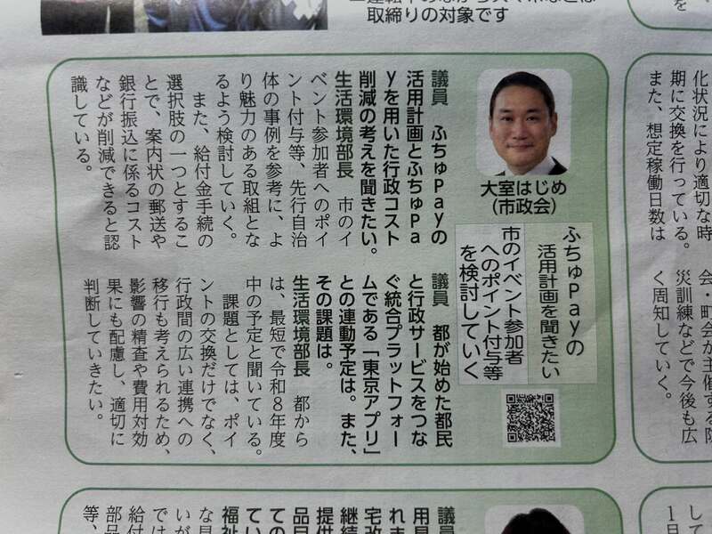 ホーム>政党・政治家>大室 はじめ (オオムロ ハジメ)>\府中市の「今」が届きました!/本日発行の「市議会だより」最新号。