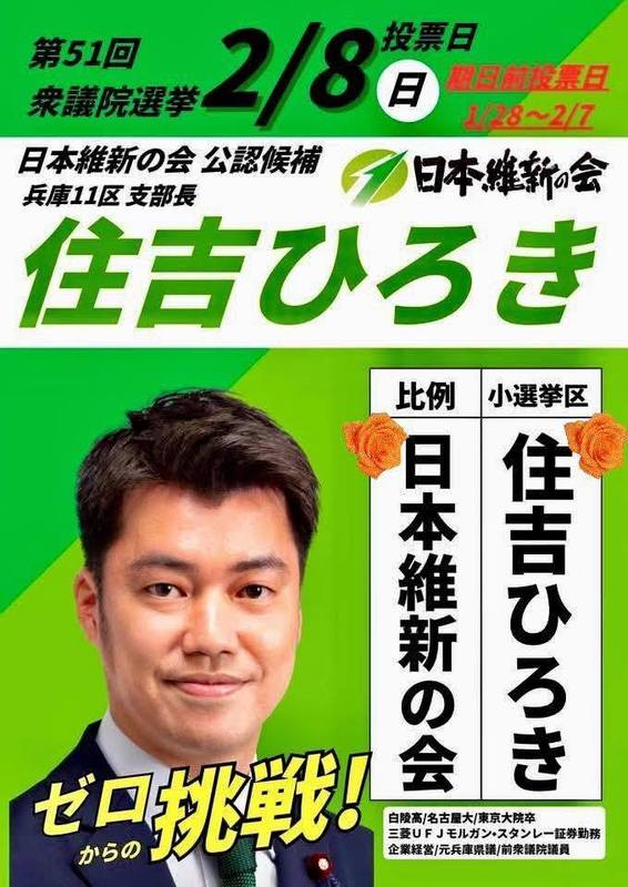 何とぞ、『比例は維新』、『小選挙区は住吉ひろき』で、よろしくお願いいたします!!!