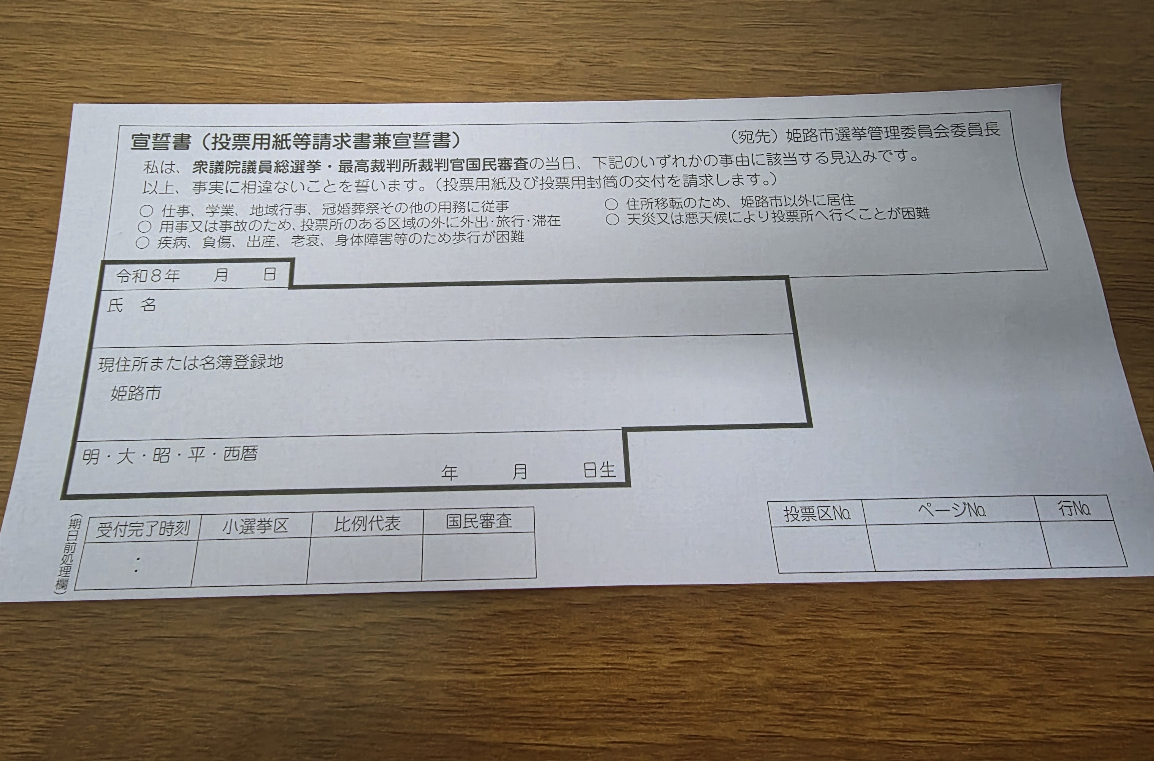 送られてくる郵便の「投票のお知らせ」(投票券)がなくても、住所と名前を現地で書くことによって、投票することが出来ます。