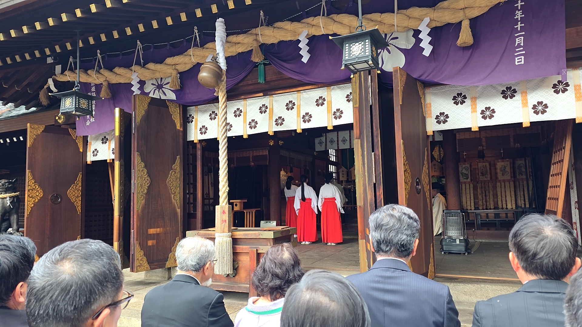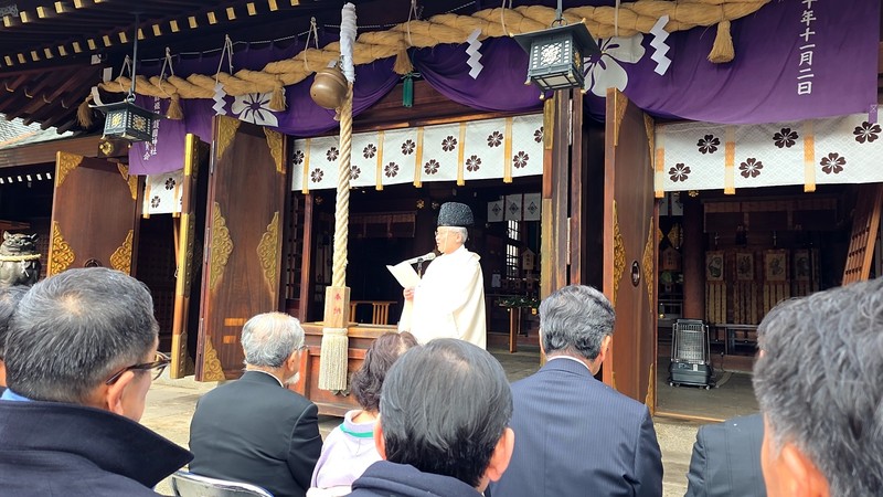 朝は「三木英一 実行委員長」による講演会。その後に境内にて神事、そして奉祝式典が執り行われました。