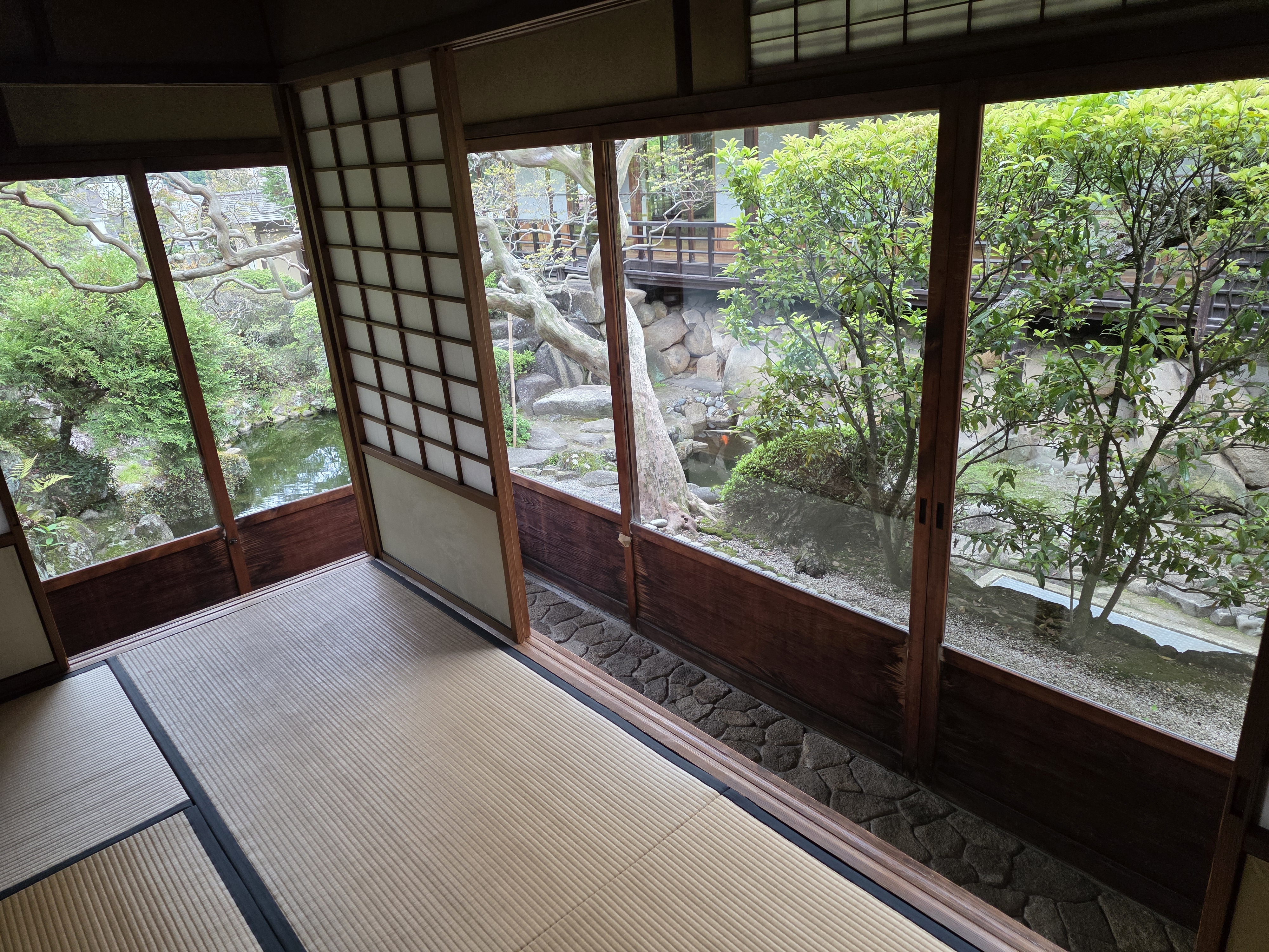 和室、茶室、廊下、棟門、石垣、それぞれが国の登録有形文化財に指定されているとのことです。建築物全体に貴重な価値があると感じます。